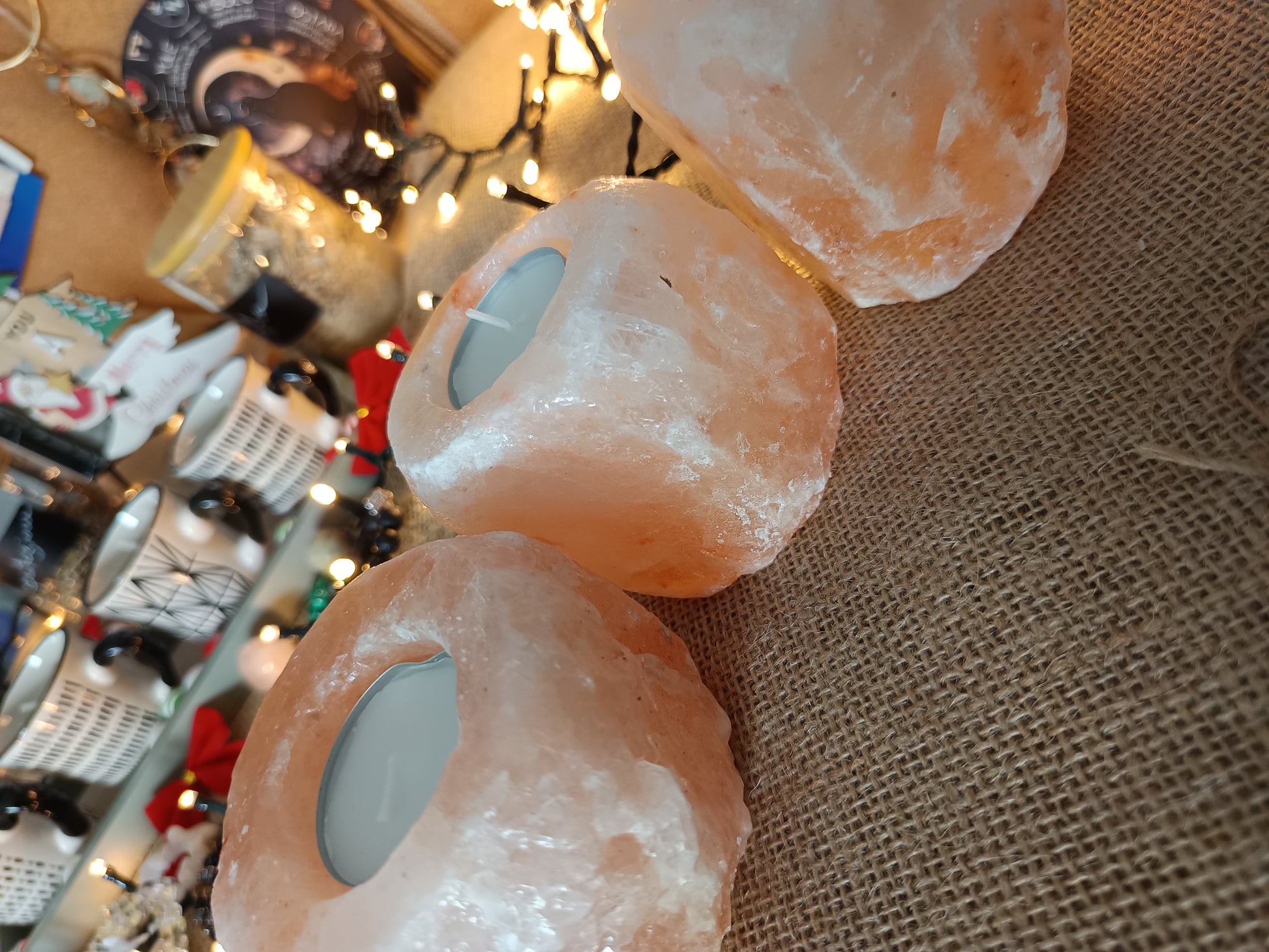 Una lampada di sale rosa naturale con candelina da 8 ore, perfetta per creare